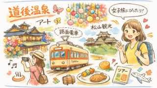 道後温泉の蜷川実花アートを楽しむ愛媛一人旅・女子旅を徹底解説。車なしで巡る松山観光モデルコース、道後温泉本館の混雑対策、伊予鉄路面電車の乗り方、ニーズツアー活用術まで網羅。