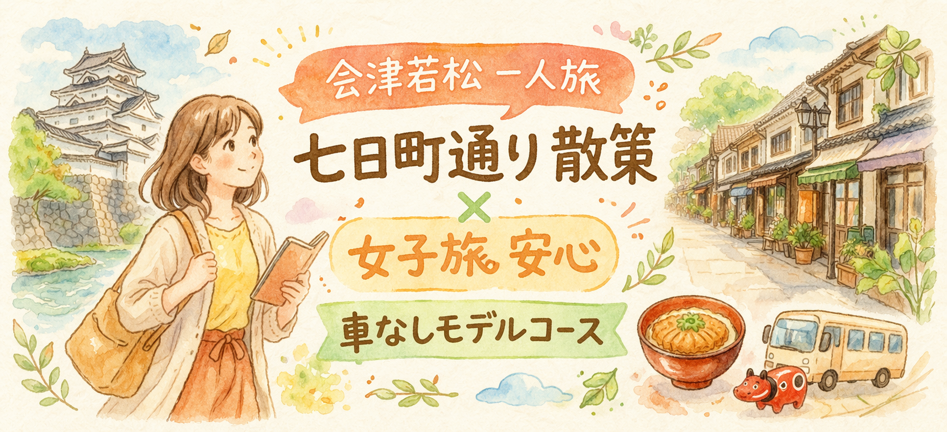 会津若松 一人旅を車なしで楽しみたい方へ。七日町通り 散策を中心に、女子旅でも安心して巡れるモデルコースやコツを分かりやすく紹介します。初めてでも迷わず楽しめる内容です。